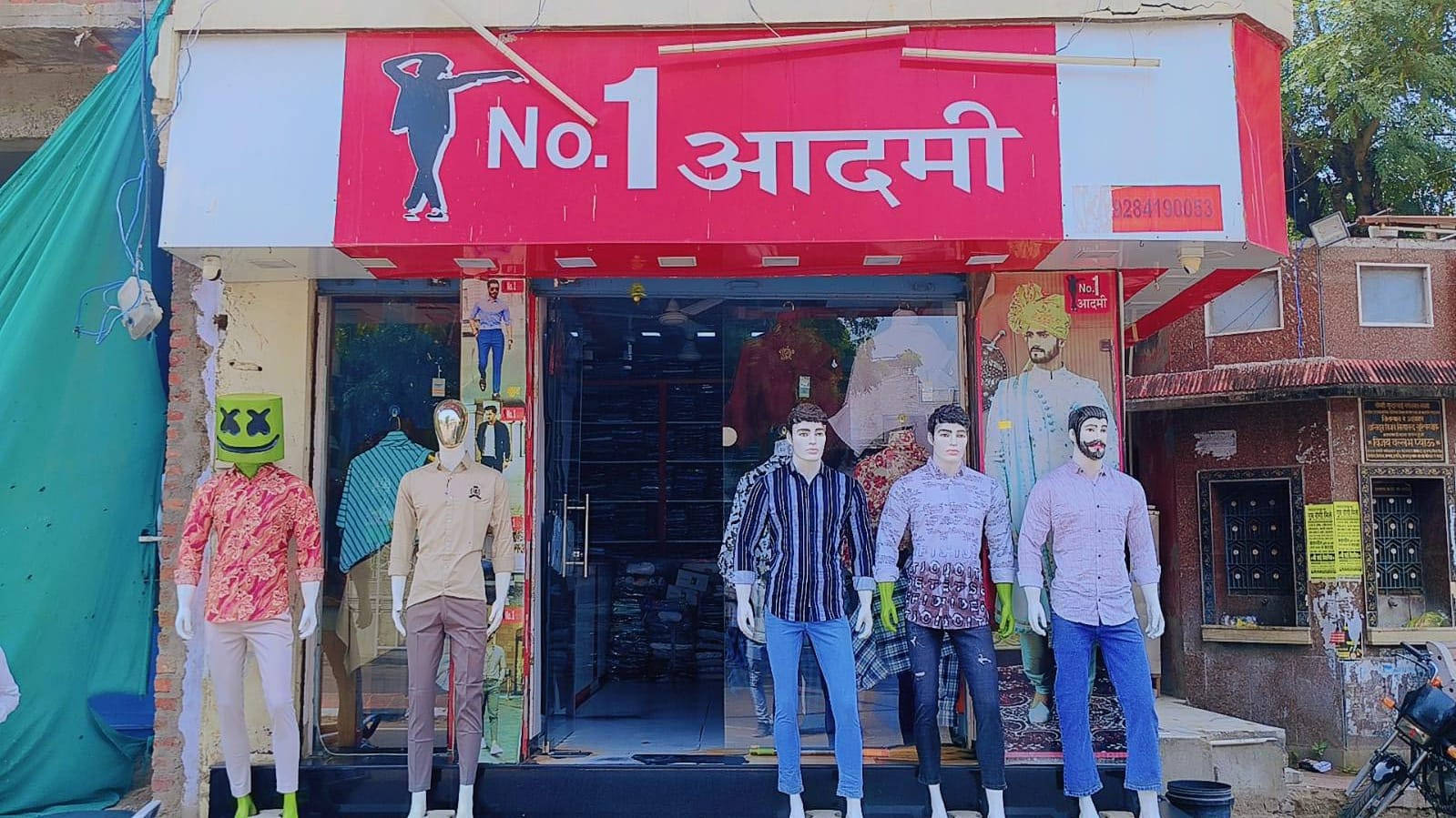 No.1 Aadmi Bali — a leading garment shop at Maharana Pratap Chowk near Girls School, Bali, offering stylish and affordable clothing for all.